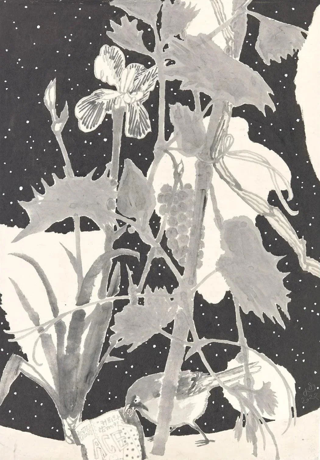 Aeri Lee, Good Luck in Ground Cherry23-50, Traditional Korean ink and gouache on mulberry paper, 2023